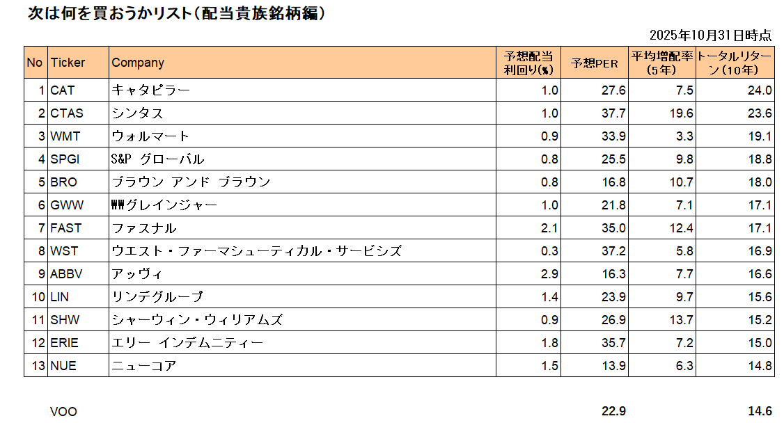 さらに言えば、毎月報告している「次は何を買おうかリスト(配当貴族銘柄編)」において、トータルリターン(10年)が市場平均(SP500)に連動する代表的なETFであるVanguard S&P 500 ETF(VOO)のトータルリターンを上回る銘柄の中で最も高い配当利回り(No 9参照)となっている。