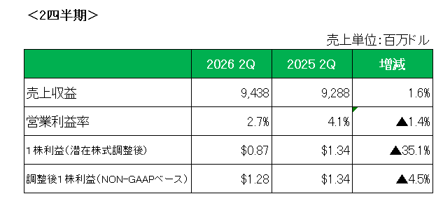 ・厳しい経営環境下にもかかわらず、2026年度第2四半期において6.500万ドルの自社株買いをを実施、2026年度中に約3億ドルを自社株買いに充てる計画に変更はないこと。つまり株主重視の姿勢に変化はないこと。