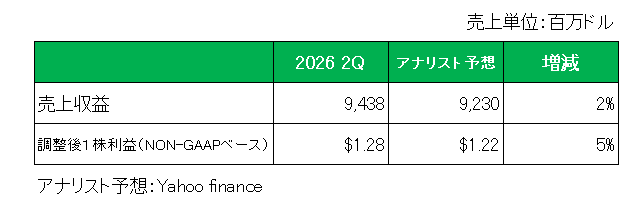 ただアナリスト予想との比較では以下のとおり売上、調整後1株利益ともに予想を上回る結果となっています。