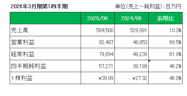 売上は前年同期比で10.3%の増収、また営業利益(+68.5%)、経常利益(+61.9%)ともに6割を超える増益。