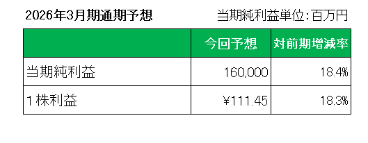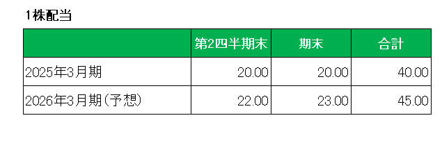 最後に配当性向40%以上としている年間配当については、2026年3月期年間(予想)配当は12.5%増配の45円(配当性向40.4%)、27期連続増配を見込んでおり前回予想から修正はありません。