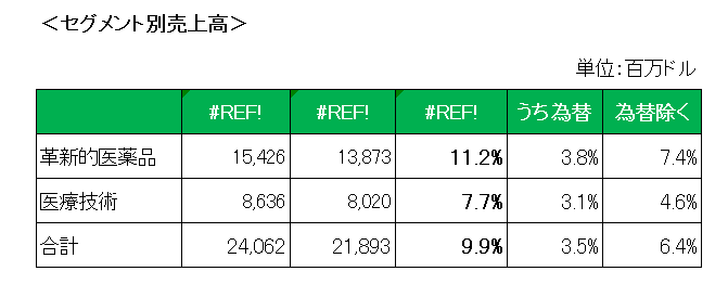 そして医療技術は、買収したショックウエーブ、メディカル・アビオメッドの貢献、電気生理学製品、外傷治療製品の伸び等により前年同期比7.7%増となっています。