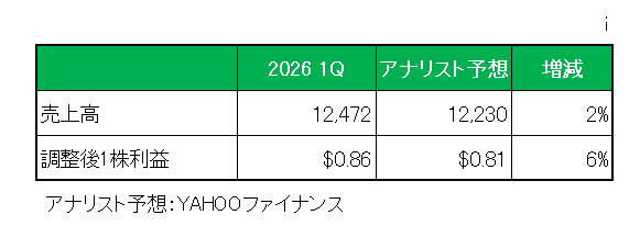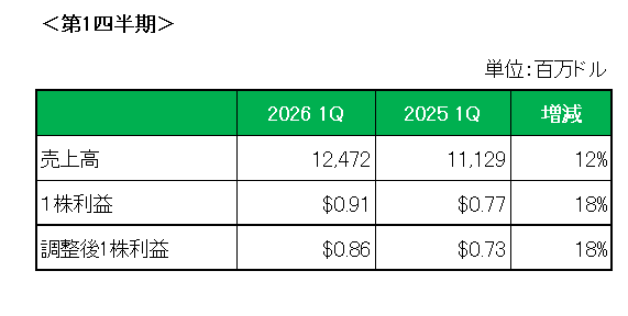 以上、第1四半期は売上、1株利益共に二けた増、また市場予想を上回ったばかりか通期見通し利益を上方修正したことは大いに評価でき、持続的なインフレや中東紛争等によるマクロ経済の不確実性の高まりの中好調なスタートを切ったと言えます。