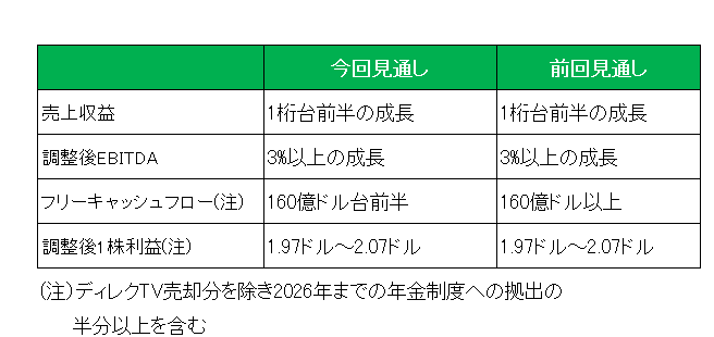 最後に2025年の通期見通しですが、以下のとおりフリーキャッシュフローは前回見通しの160億ドル以上から160億ドル台前半に修正したもののその他の項目は前回見通しを維持しています。