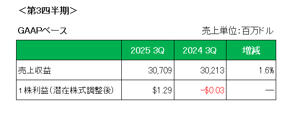 また再開した自社株買いについては、第3四半期に15億ドル、今期累計で24億ドル以上を買い戻しています。
