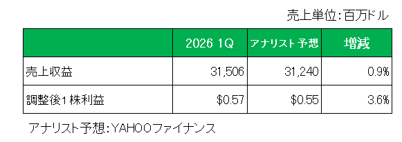 またアナリスト予想との比較では、以下のとおり売上、調整後1株利益共に予想を上回っています。