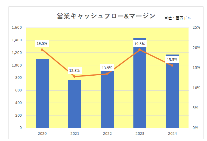 では真の稼ぐ力を表す営業キャッシュフローマージンは?