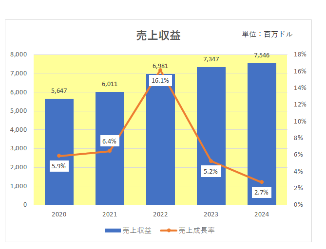 こちらは2024年は微減とはなりましたが、増益トレンドとなっています。
