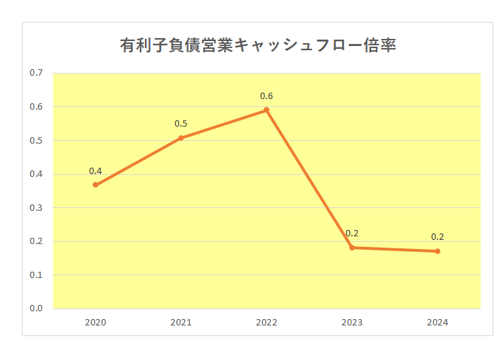 有利子負債営業キャッシュフロー倍率=有利子負債÷営業キャッシュフロー