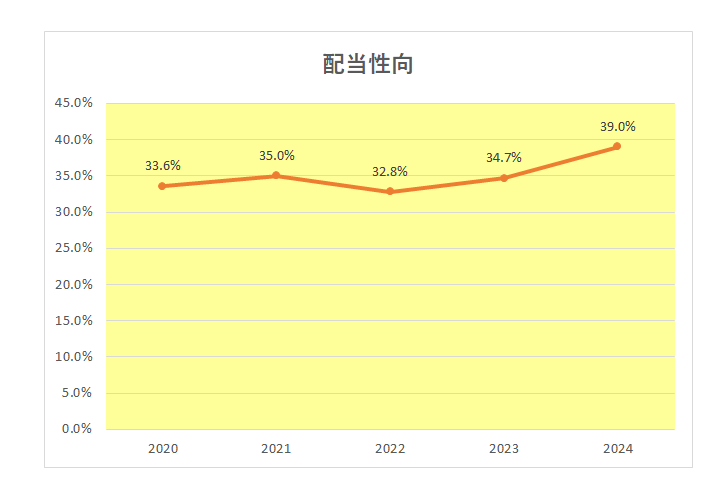 また配当性向は以下のとおり40%を下回っており、決して無理をした増配でないことがわかります。