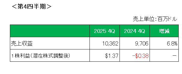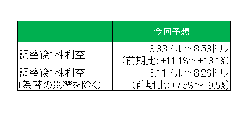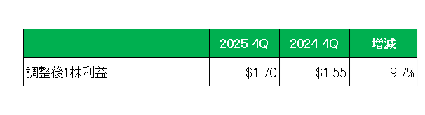最後に注目の今期2026年の調整後1株利益の通期見通しは、市場予想を上回る8.38ドル~8.53ドル(2025年実績7.54ドルに対して11.1%~13.1%の増益予想)としています。