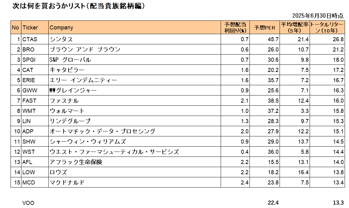 「次は何を買おうかリスト(配当貴族銘柄編)」をアップデートしました。(2025年6月末時点) 皆さんの銘柄選びの参考になれば幸いです