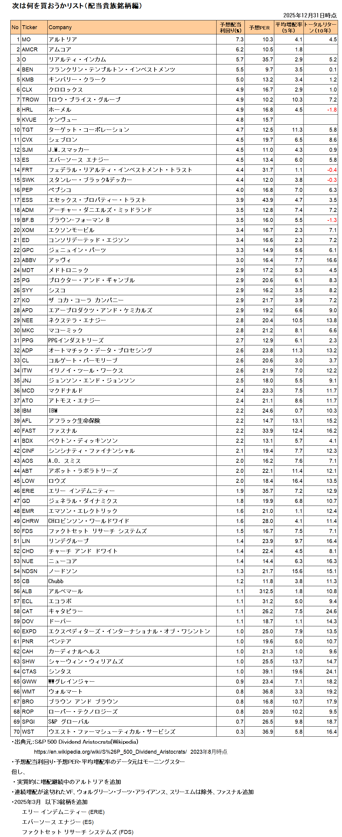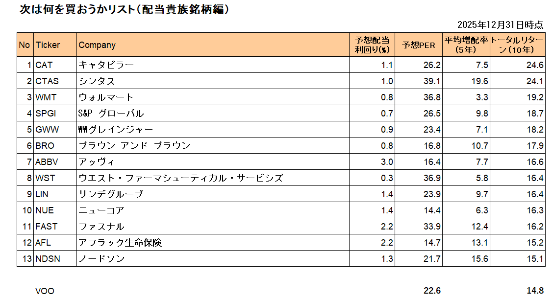 定例の「次は何を買おうかリスト(配当貴族銘柄編)」のアップデートを行いました。