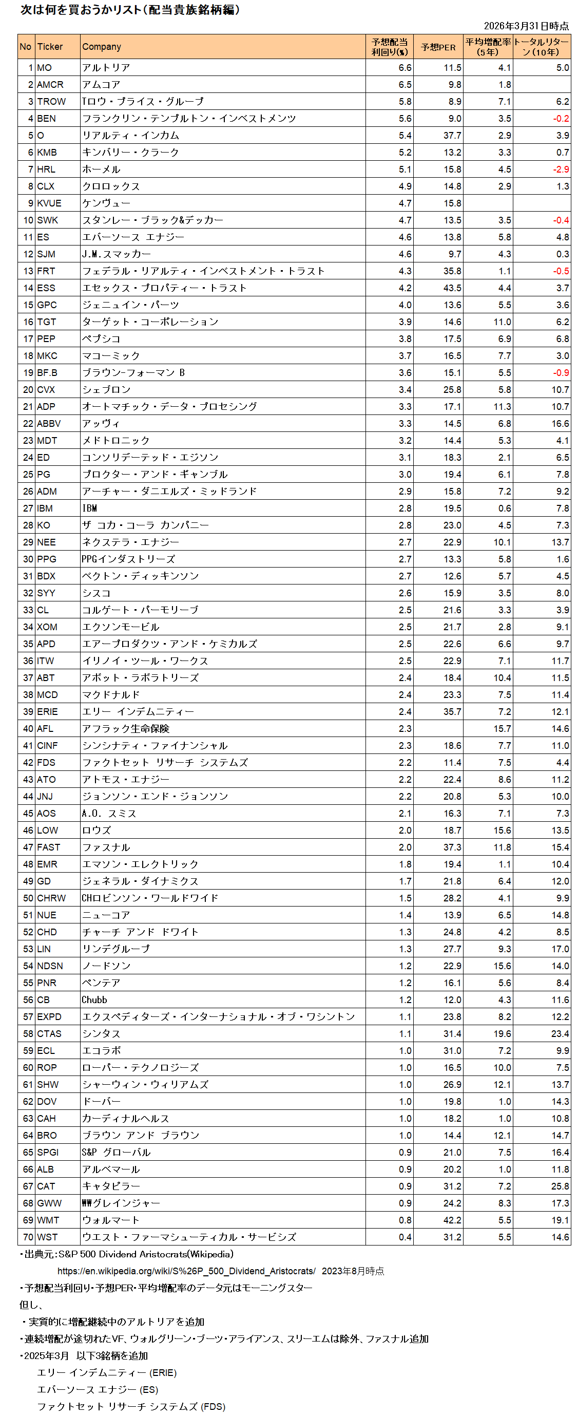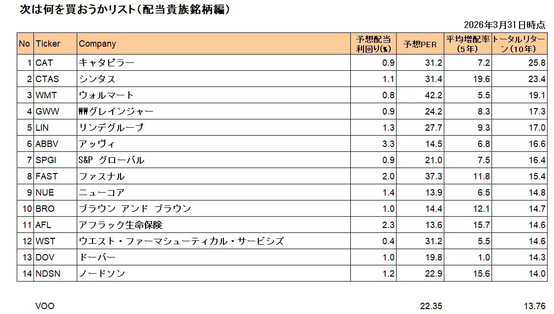 定例の「次は何を買おうかリスト(米国配当貴族銘柄編)」のアップデートを行いました。