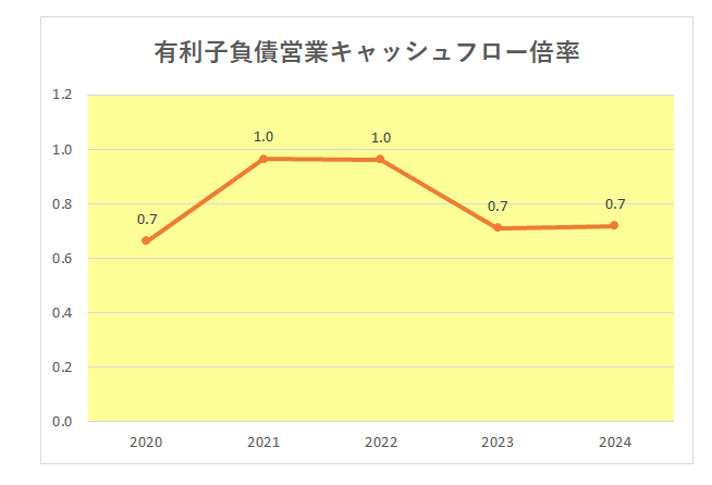 有利子負債営業キャッシュフロー倍率=有利子負債÷営業キャッシュフロー