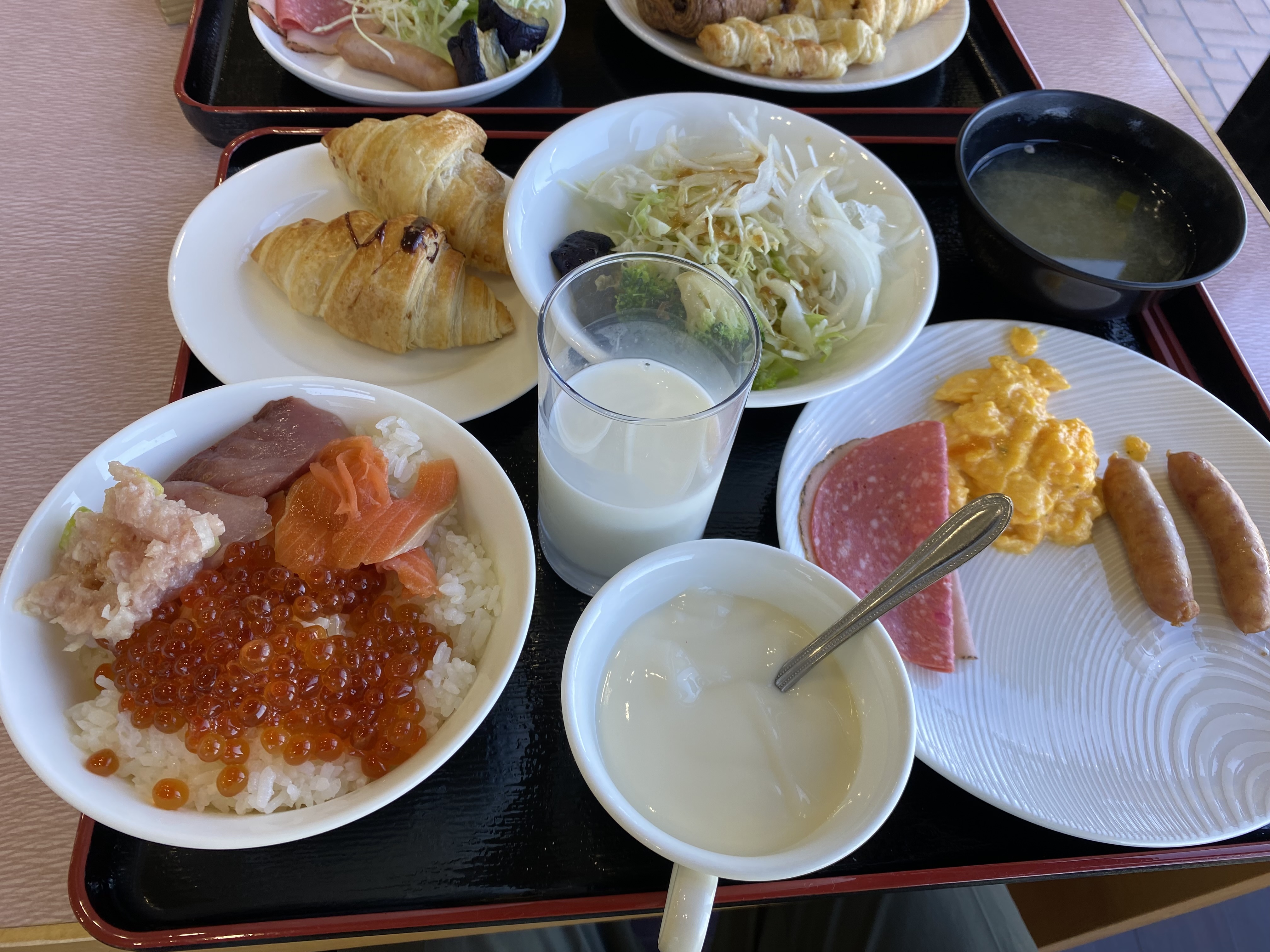 こちらはバイキングの食事でしたが、寿司や刺身、そして朝から海鮮丼が楽しめる等、やはりおいしい海の幸を堪能できました。
