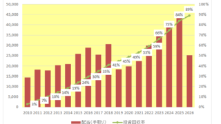 しかしたとえ増配率が下がっているとはいえ毎年着実に配当収入が増加している。