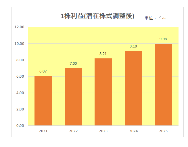 次に1株利益(潜在株式調整後)もこれまた同様。