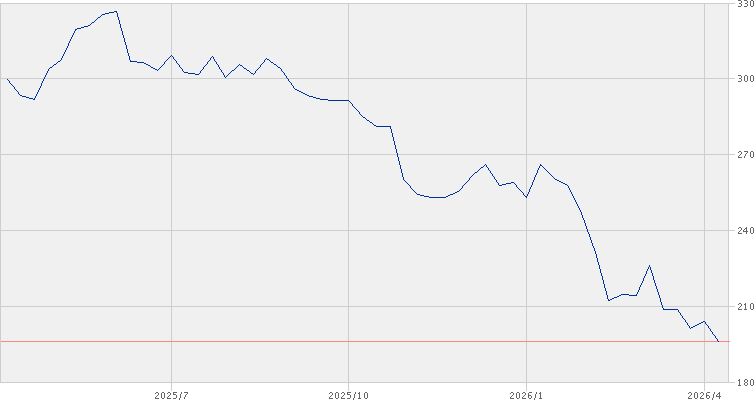 しかしここ1年の株価を見ると以下のとおり大きく値を下げている。