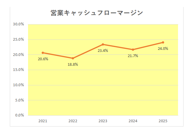 では真の稼ぐ力を表す営業キャッシュフローマージンは?
