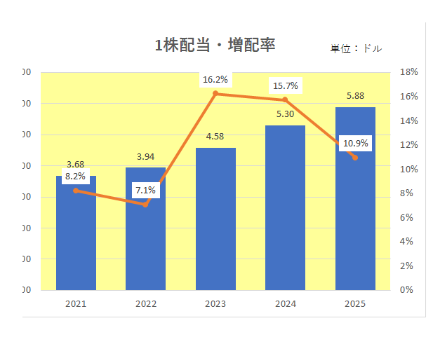 そしてインカムゲイン投資家注目の増配率は御覧のとおりここ3年では毎期10%以上となっており文句のつけようがない。