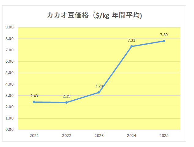 そのカカオ価格が2024〜2025年にかけて歴史的高騰を見せたのは記憶に新しいところ。