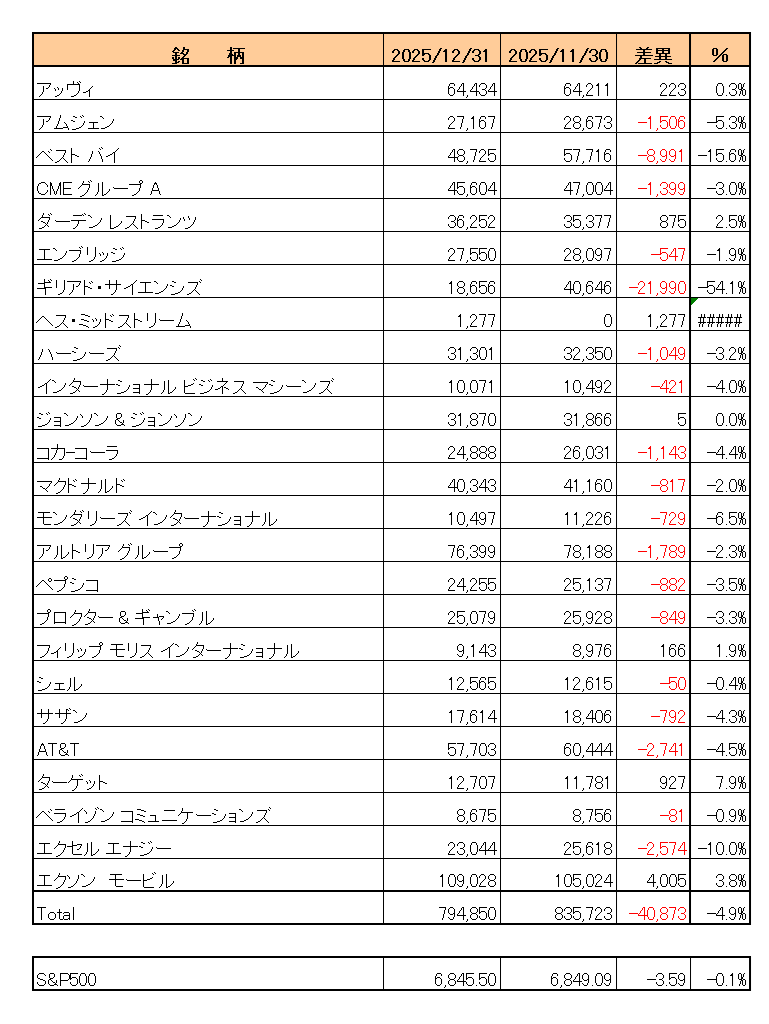 ちなみにS&P500のパフォーマンスは前月比ほぼ横ばいの-0.1%となっており、11月の超珍しい市場平均を上回るパフォーマンスから一転、再び指定席への舞い戻りとなりました。(涙)