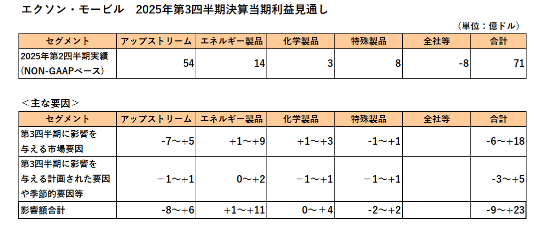 エネルギー大手のエクソン・モービル(XOM)が現地時間の10月6日にForm 8-Kを提出し、2025年第3四半期の利益見通しを開示しました。